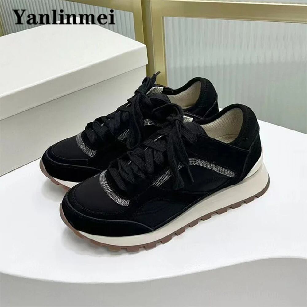 女性用厚底スニーカー,スエードと牛の靴,レース付きのカジュアルなフラットシューズ スニーカー 厚底 T240907223424_06