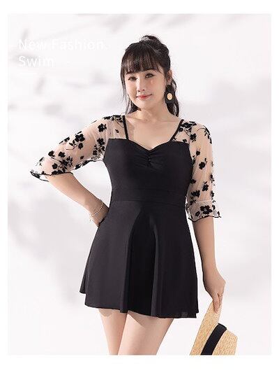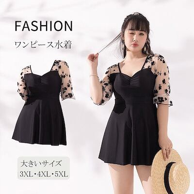 水着 レディース ワンピース 体型カバー水着 大きいサイズ 4L 5L 6L ぽっちゃり かわいい おしゃれ 黒 花柄 ハイウエスト 露出控えめ 二の腕 お尻 太もも お腹 カバーアップ 20