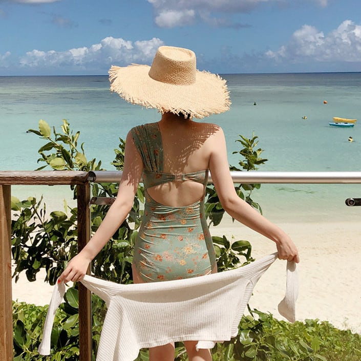 ワンショルダー 水着 花柄 ワンピース 水着 レディース 体型カバー ビキニ 夏 海 ママ水着 リゾート 旅行★★ 水着 レディース おしゃれ ビーチ ビキニ リゾート プール 体型カバー スリム 可愛い インスタ映え セパレート 露出控えめ 盛れるハイウエスト 韓国 日焼け対策 競泳 スイムウェア日焼け防止 スタイルアップ 着痩せ
