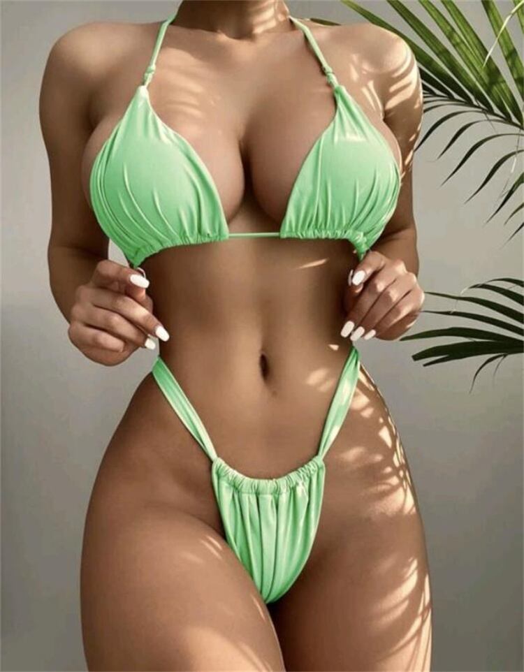 セクシー ピュアカラー スプリット ビキニ レディース 水着 スリム