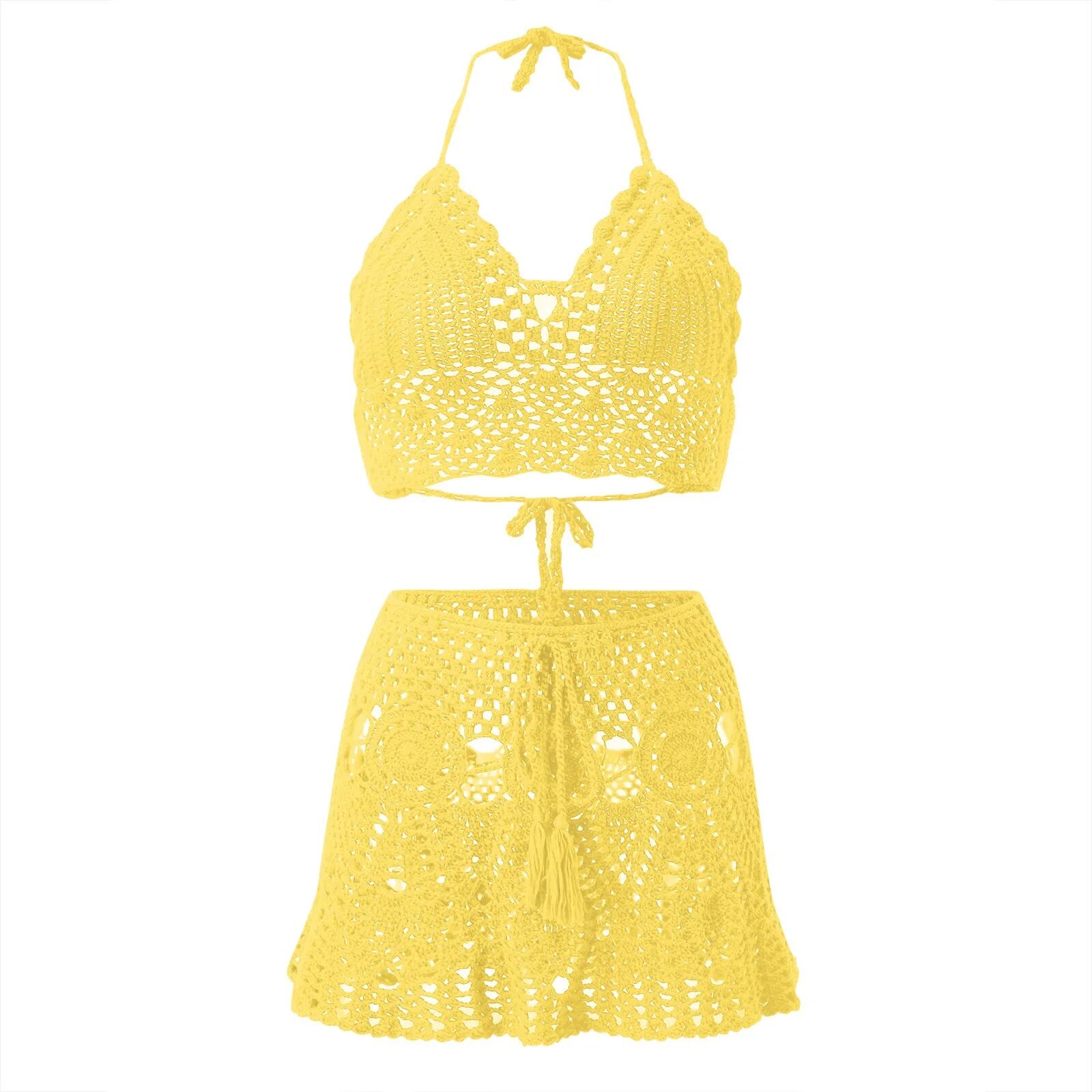 女性のためのツーピースのビキニセット,10代の水着,透かし彫りのビーチウェア,夏,2個 ビキニ Tシャツ T240618233434_01