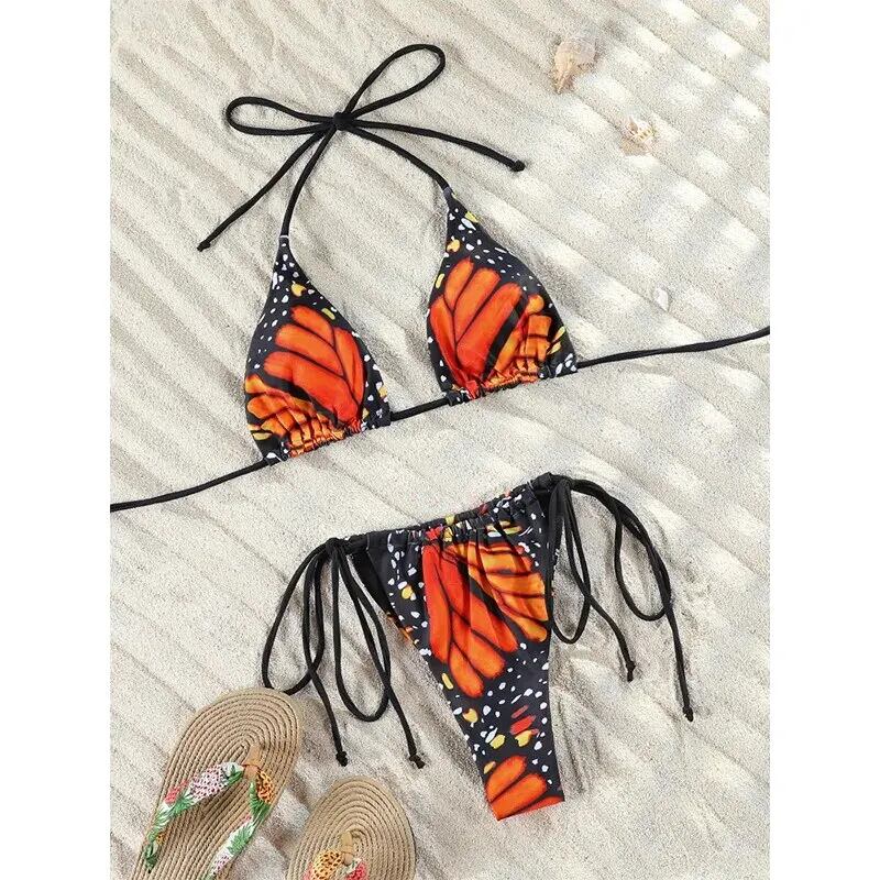女性用バタフライプリントのマイクロタンキニセット,セクシーなトライアングル水着,包帯スタイルの水着,夏用ビキニ ビキニ Tシャツ T240618233704_01
