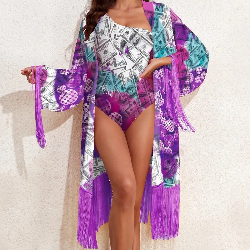 トロピカルプリント3ピースビキニセット女性用、ハイウエスト水着、女性用バススーツ、カバーアップ、2022 ビキニ Tシャツ T240618234410_05