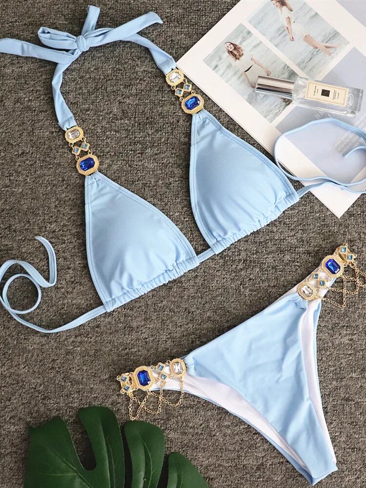 Deat 女性の中空アウトビキニセット、単色、レースアップホルター、ダイヤモンド水着、セクシーなパーティースーツ、新しい、夏、2ピース、2022、11xx1334 ビキニ Tシャツ T240618234421_04