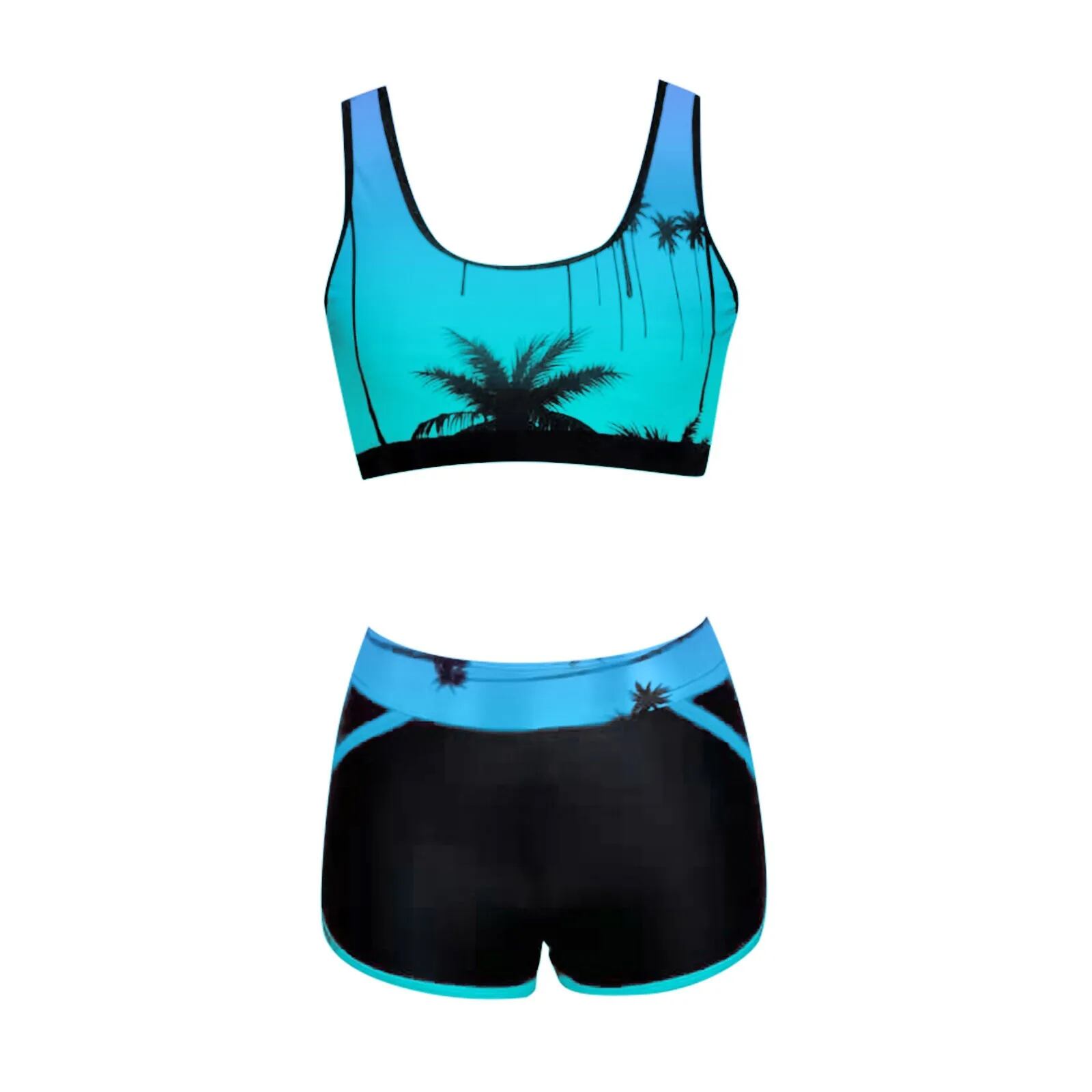 女性用パームツリープリントビキニセット,ハイウエスト水着,3Dサマービキニセット,ビーチウェア,グラフィックスーツ,新品,2個 ビキニ Tシャツ T240618234629_03