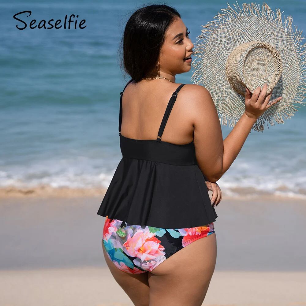 調味料 ツーピースの女性用ビキニ,花柄の水着,タンキニ,ハイウエスト,ラージサイズ ビキニ Tシャツ T240618234915_01