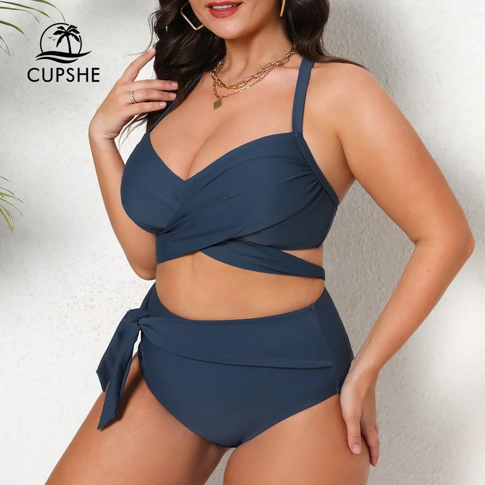 Cupshe 女性用ツーピース水着,ラージサイズ,ラップクロージャー付き,ハイウエスト,ラージサイズ,3XL,ビーチウェア,2023 ビキニ Tシャツ T240618234917_01