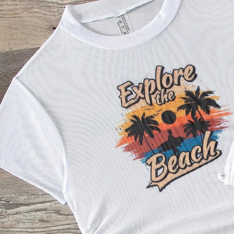プリント水着カバーアップ女性用ブラとパンティー、透明メッシュ、ショートショール、スプリットビキニ、ホルターレースアップブラ、水着1セット ビキニ Tシャツ T240618235105_01