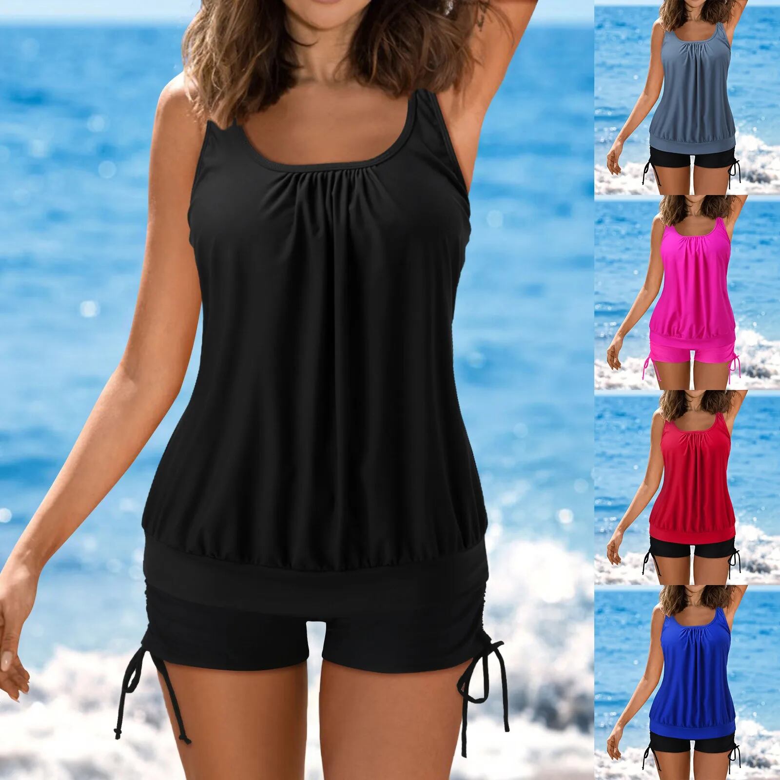 女性用ツーピースタンキニ水着、日光浴、ボーイズショーツ付きトップス、マイクロビキニ、トング、ビーチウェア、衣装セット ビキニ Tシャツ T240618235112_05