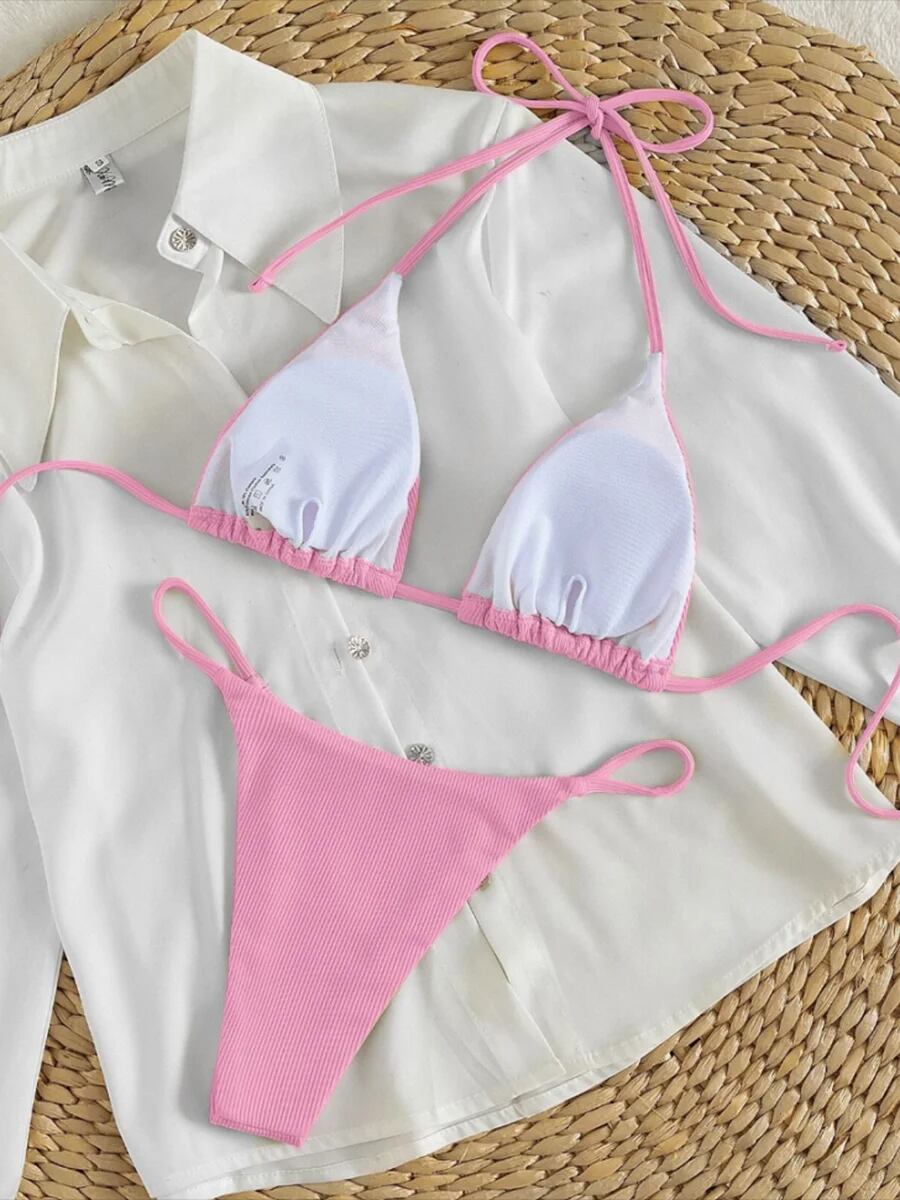女性のための三角形の水着,セクシー,ビキニ,ひも,単色,パッド入り,水泳,ビーチウェア,2021 ビキニ セパレート レディース T240618174849_01