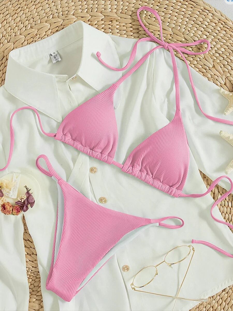 女性のための三角形の水着,セクシー,ビキニ,ひも,単色,パッド入り,水泳,ビーチウェア,2021 ビキニ セパレート レディース T240618174849_03