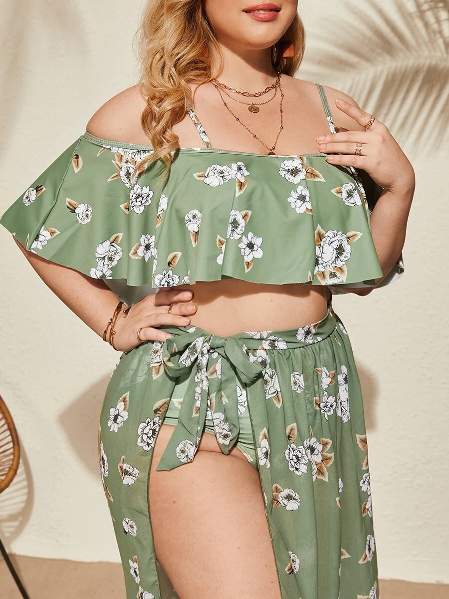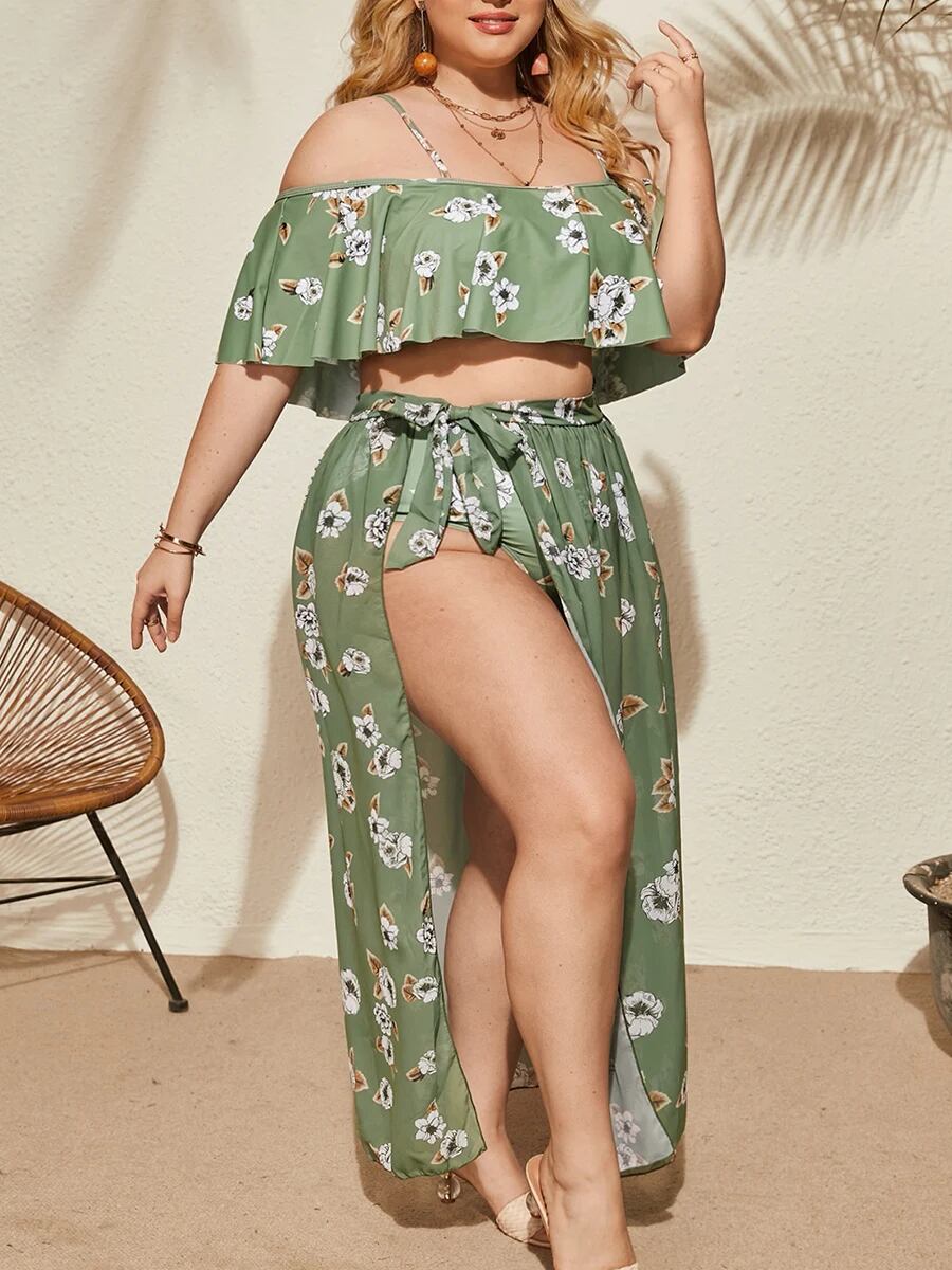大サイズビキニ2023女性高ワスト水着 & ビーチスカートプラス花柄フリル裾水着女性水着水着 ビキニ セパレート レディース T240618174913_01