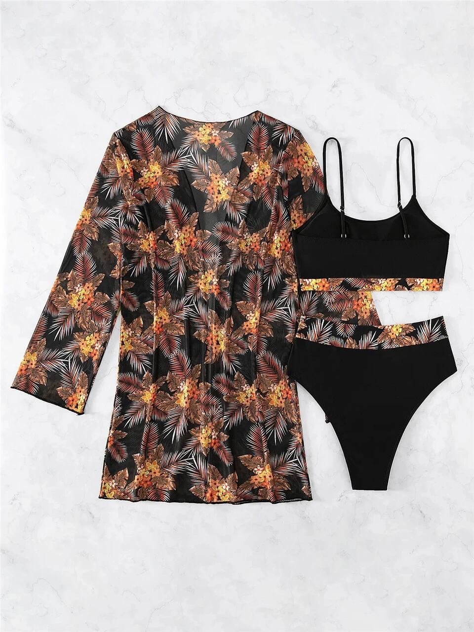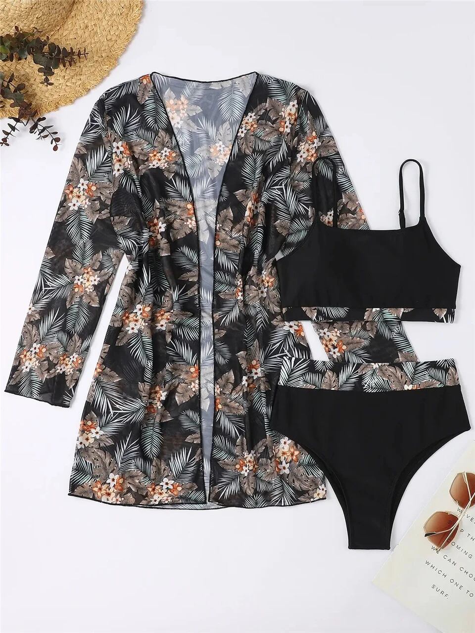 モデル番号:3 Pieces High Waist Bikini Set & Long Sleeve Cover Up Swimsuit 2024