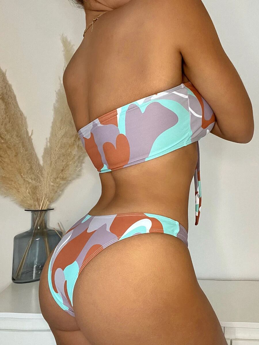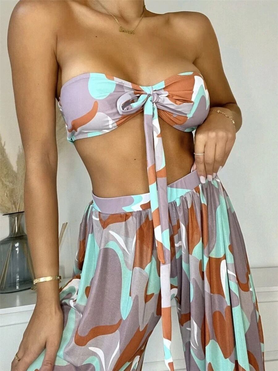 モデル番号:3pcs Tie Front Bandeau Bikini Set 2023 Women Triangle Swimwear