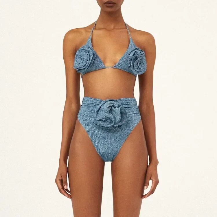 2ピースの女性用水着セット,レースブラ,3D花の装飾,透明なクサキパンティー,ビーチウェア,新しいコレクション ビキニ セパレート レディース T240618175107_03