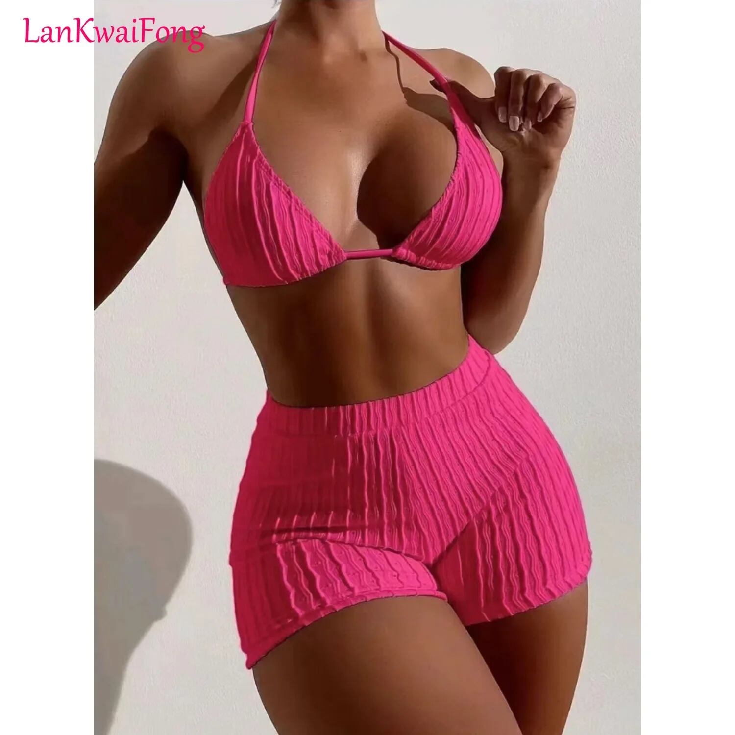 女性用ビキニセット,3Dストライプ水着,バストバンド,ブラ,フラットアングルショーツ,ストラップ,ビキニ,LKF-2-Piece★ ワンピース水着 レディース セパレート水着 おしゃれ ビーチ ビキニ リゾート プール 体型カバー スリム 可愛い インスタ映え
