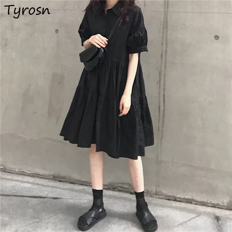 女性用半袖ロングドレス,ルーズフィット,無地,膝丈,原宿,折り返し襟,韓国ファッション★ ワンピース水着 レディース セパレート水着 おしゃれ ビーチ ビキニ リゾート プール 体型カバー スリム 可愛い インスタ映え