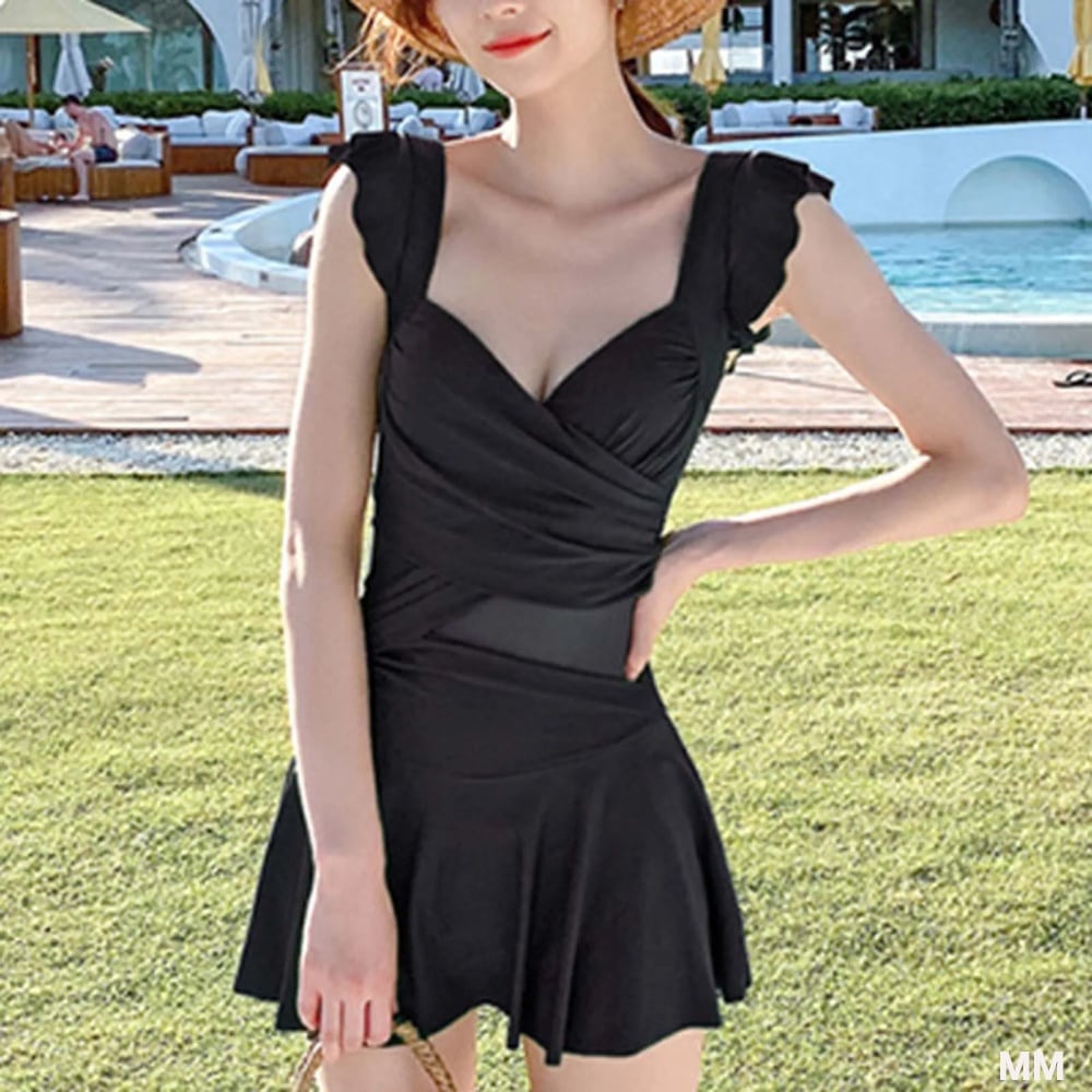 フリル付き水着ドレス,Vネック,ビーチウェア,サンドレス,ビキニ,新作コレクション 韓国系水着 セパレート水着 ワンピース水着 T240626144124_01