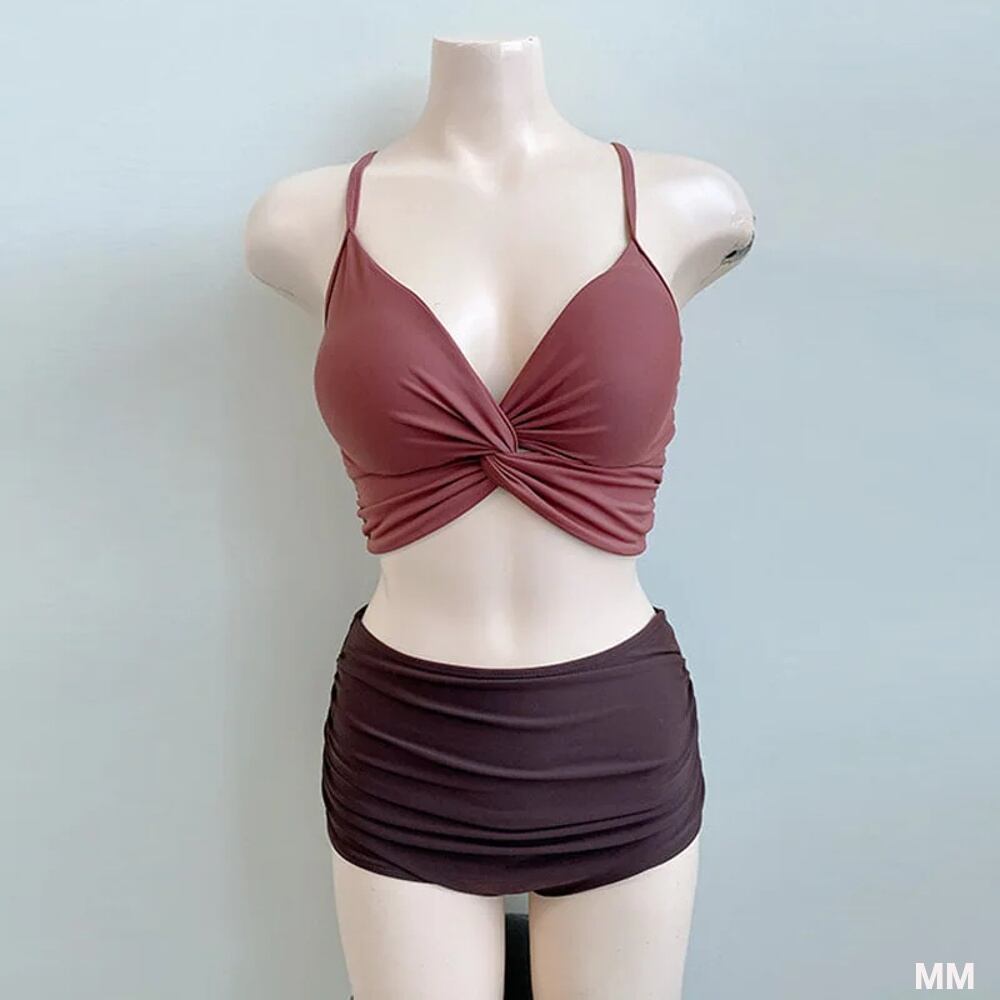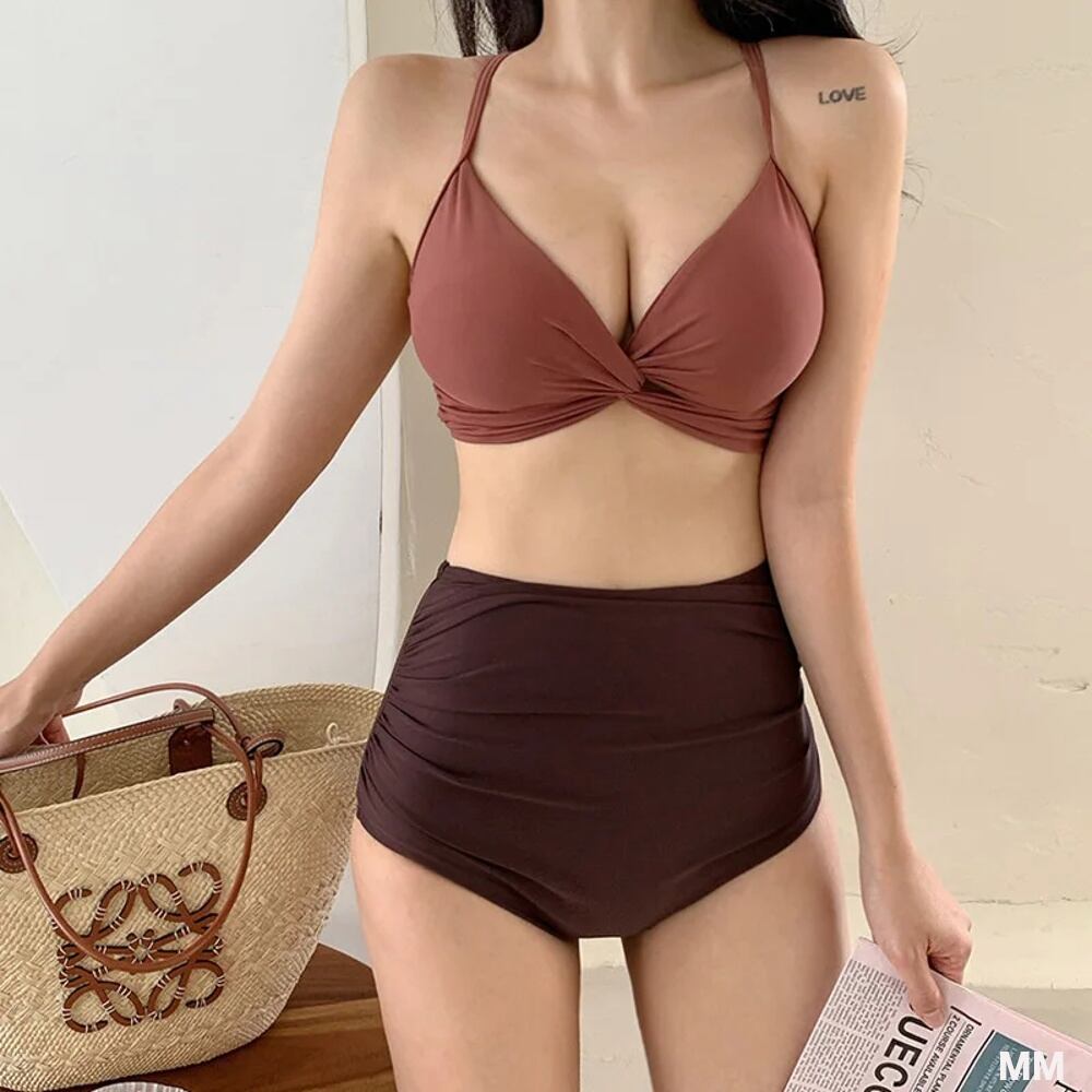 女性用無地ハイウエストビキニ,韓国女性用水着,Vネック水着,セクシー水着2022 韓国系水着 セパレート水着 ワンピース水着 T240626144225_02