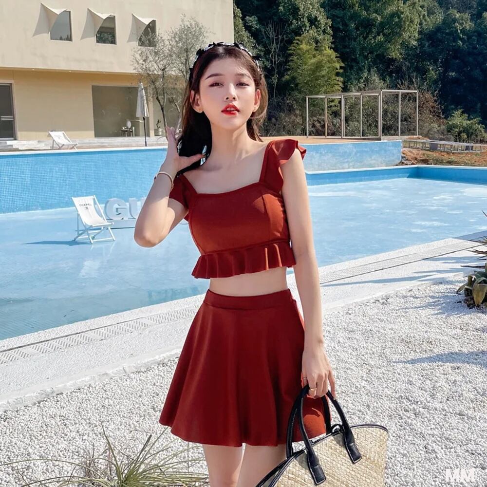 女性用ツーピースフリルチェック水着,ビーチウェア,ハイウエスト,和風,韓国スタイル 韓国系水着 セパレート水着 ワンピース水着 T240626144417_02