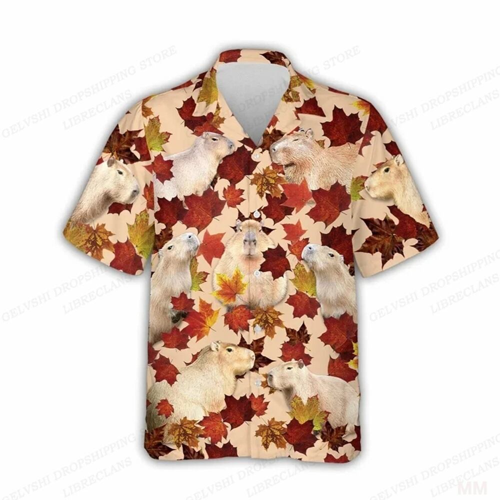 Capyオル 男性と女性のためのハワイアンシャツ、襟付き半袖シャツ、花柄デザイン、ファッション、ビーチ、夏用 Tシャツ シャツ T240619141941_01