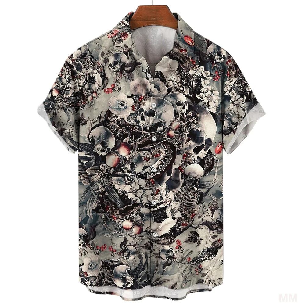 男性と女性のための3Dスカルヘッドプリントシャツ,カジュアルファッション,半袖,ボタン付きラペル,特大ユニセックスウェア,夏 Tシャツ シャツ T240619141951_02