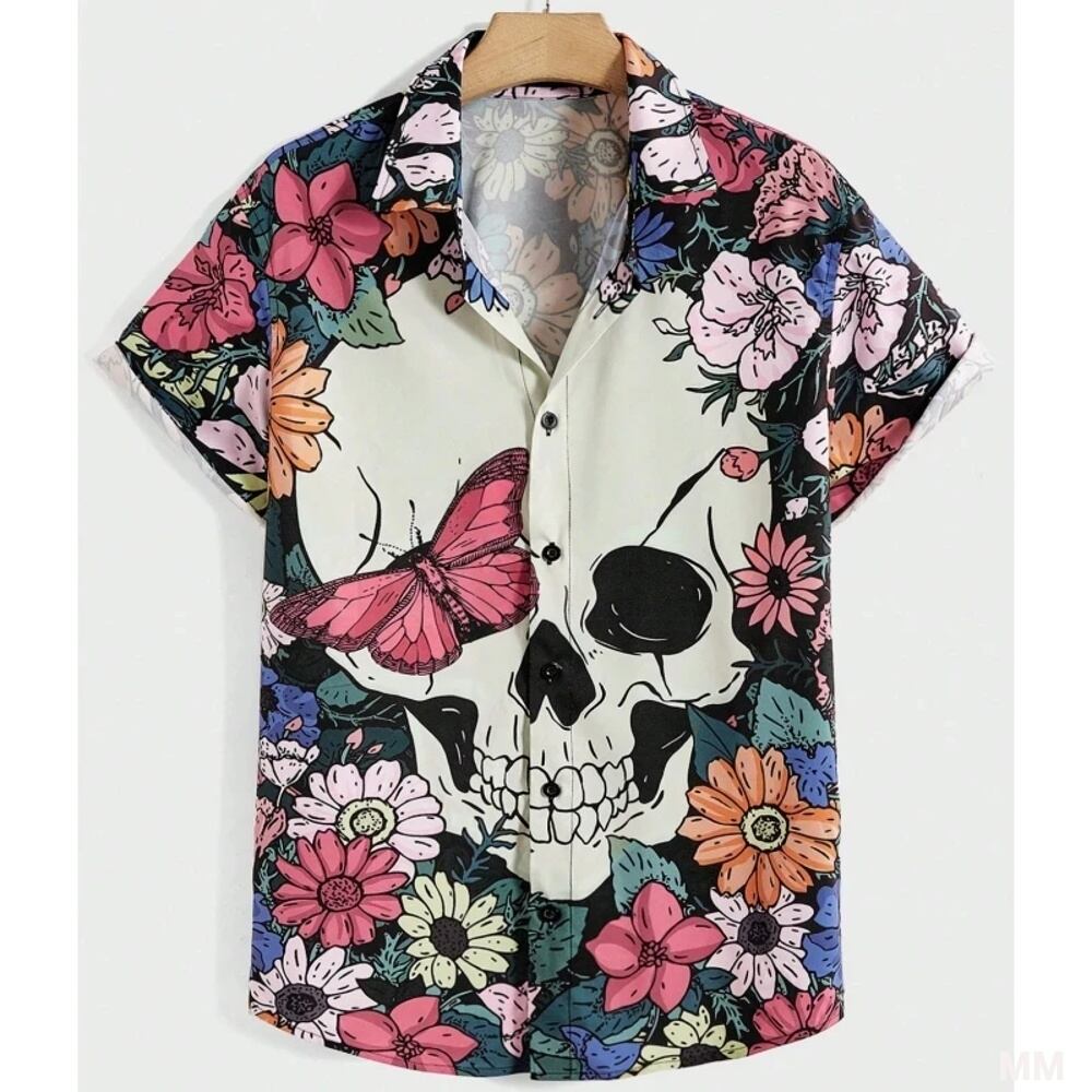 男性と女性のための3Dスカルヘッドプリントシャツ,カジュアルファッション,半袖,ボタン付きラペル,特大ユニセックスウェア,夏 Tシャツ シャツ T240619141951_12