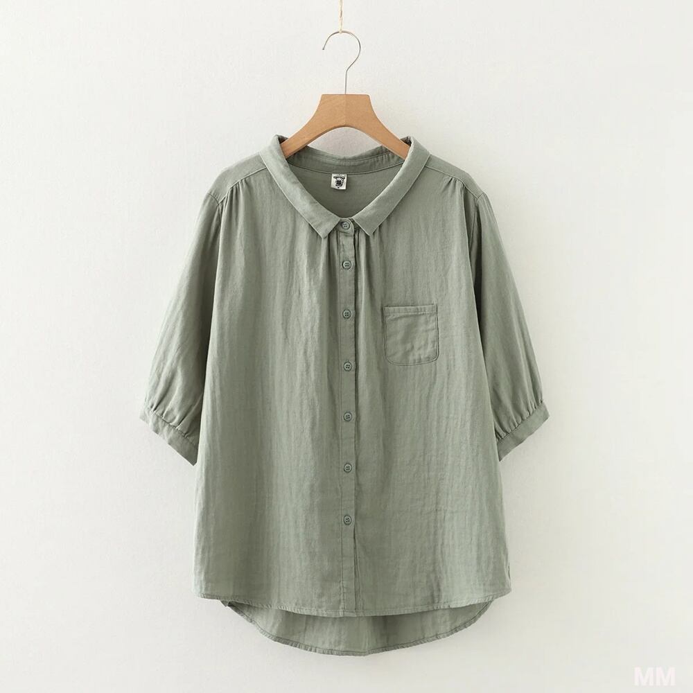 女性の夏の綿糸シャツ,半袖の白いブラウス,だぶだぶの女性の服 Tシャツ シャツ T240619142008_04