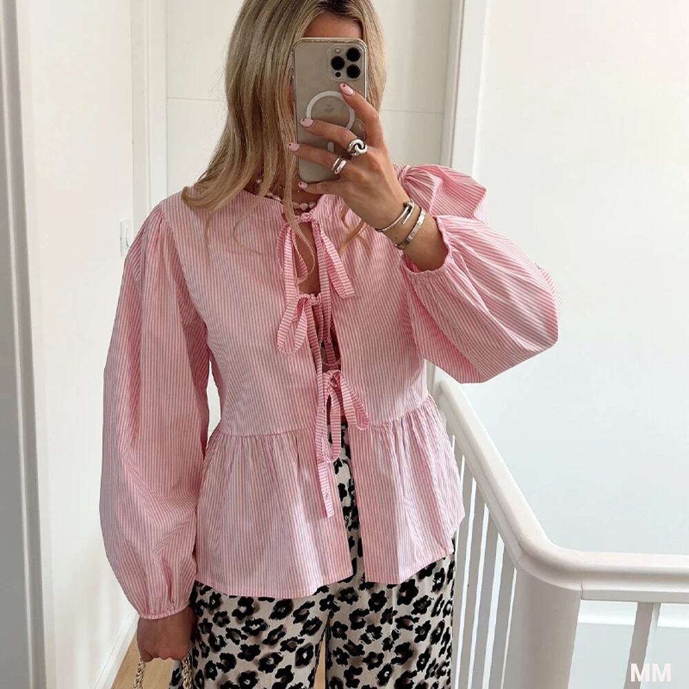 style 2:Women Bow Elegant Puff Long Sleeves Lady Blouse