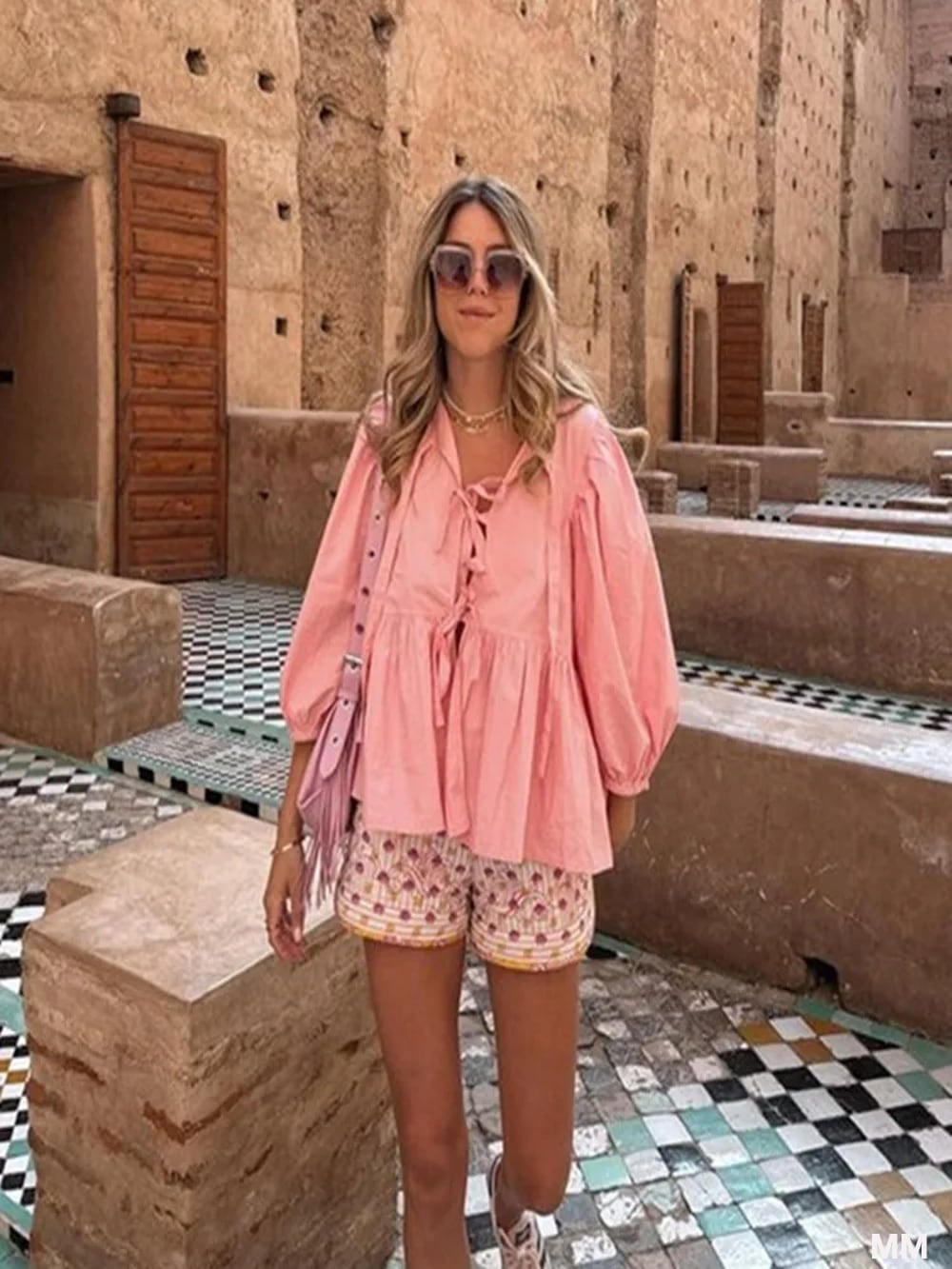 style 1:Hollow Out Lace Up Shirts