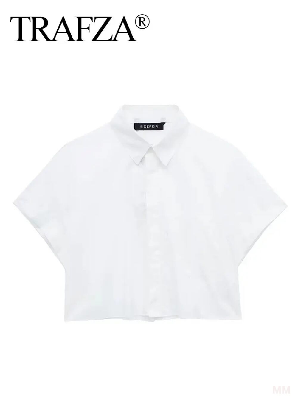 Trafza 女性用の青いストライプのクロップドブラウス,半袖ポロシャツ,エレガントなトップス,春と夏,ファッショナブル,2024 Tシャツ シャツ T240619142112_02