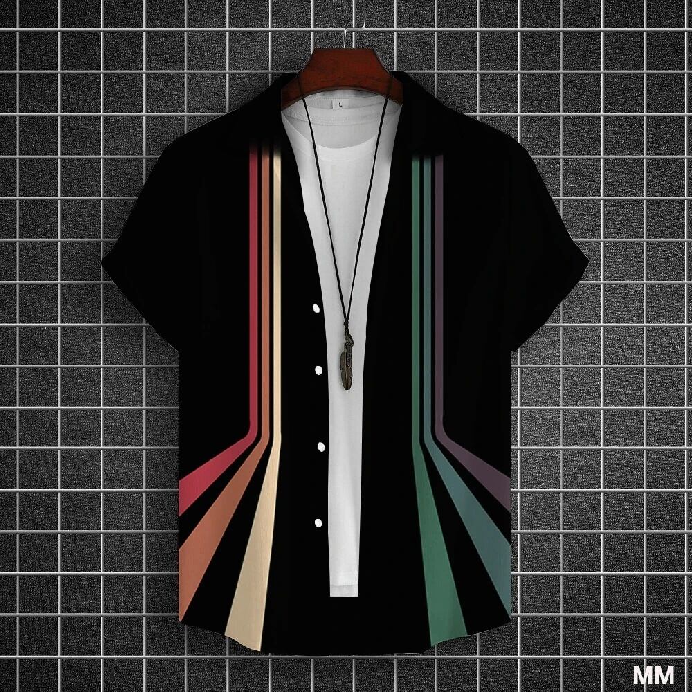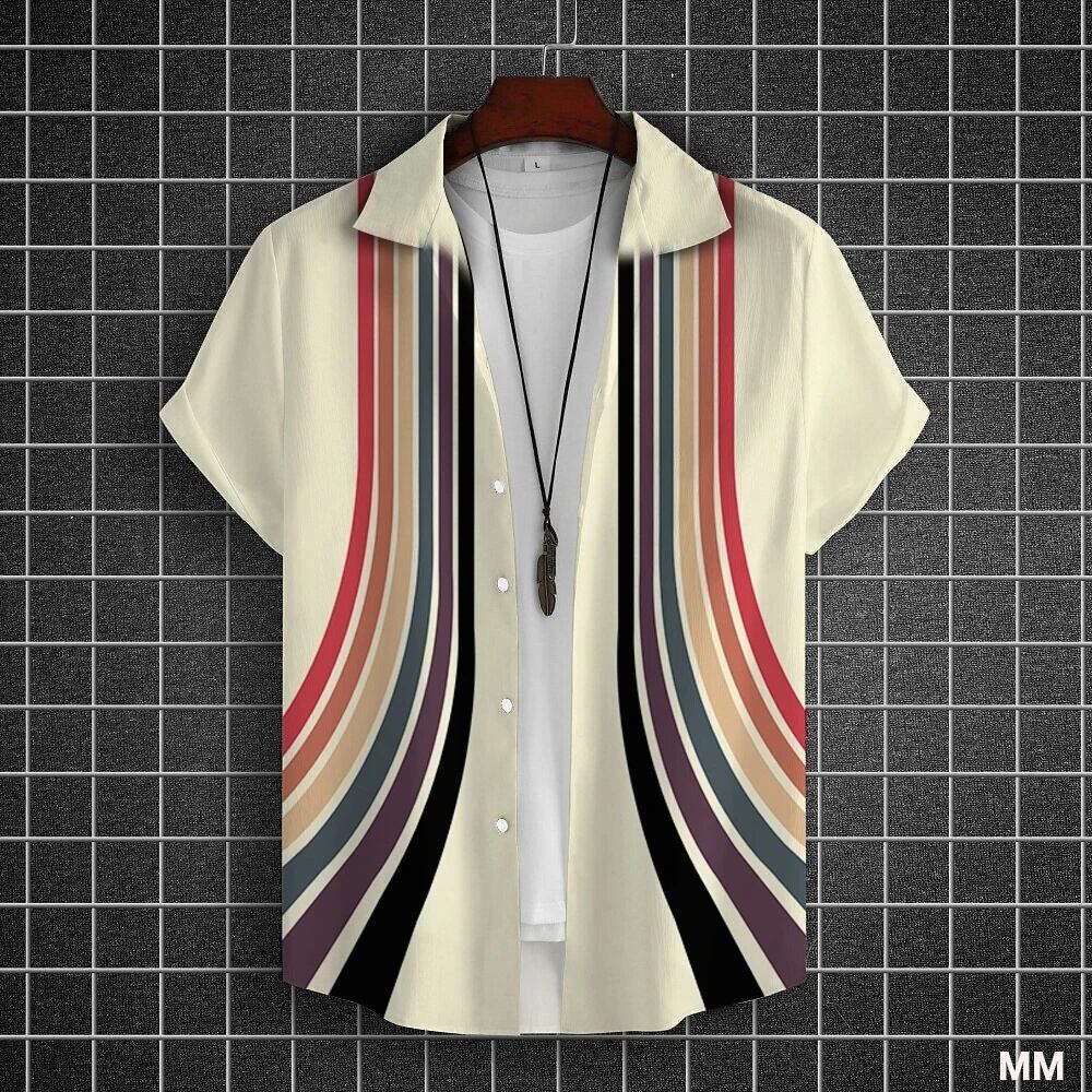 男性と女性のためのシンプルなストライプの3Dプリントシャツ,カジュアルなファッション,半袖,ボタン付きラペル,ストリートウェア,特大,ユニセックスの服 Tシャツ シャツ T240619142223_04