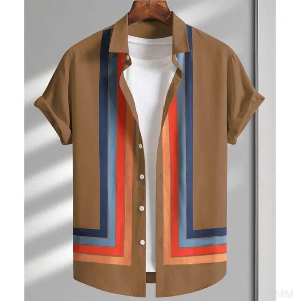 男性と女性のためのシンプルなストライプの3Dプリントシャツ,カジュアルなファッション,半袖,ボタン付きラペル,ストリートウェア,特大,ユニセックスの服 Tシャツ シャツ T240619142223_22