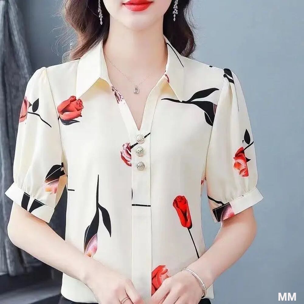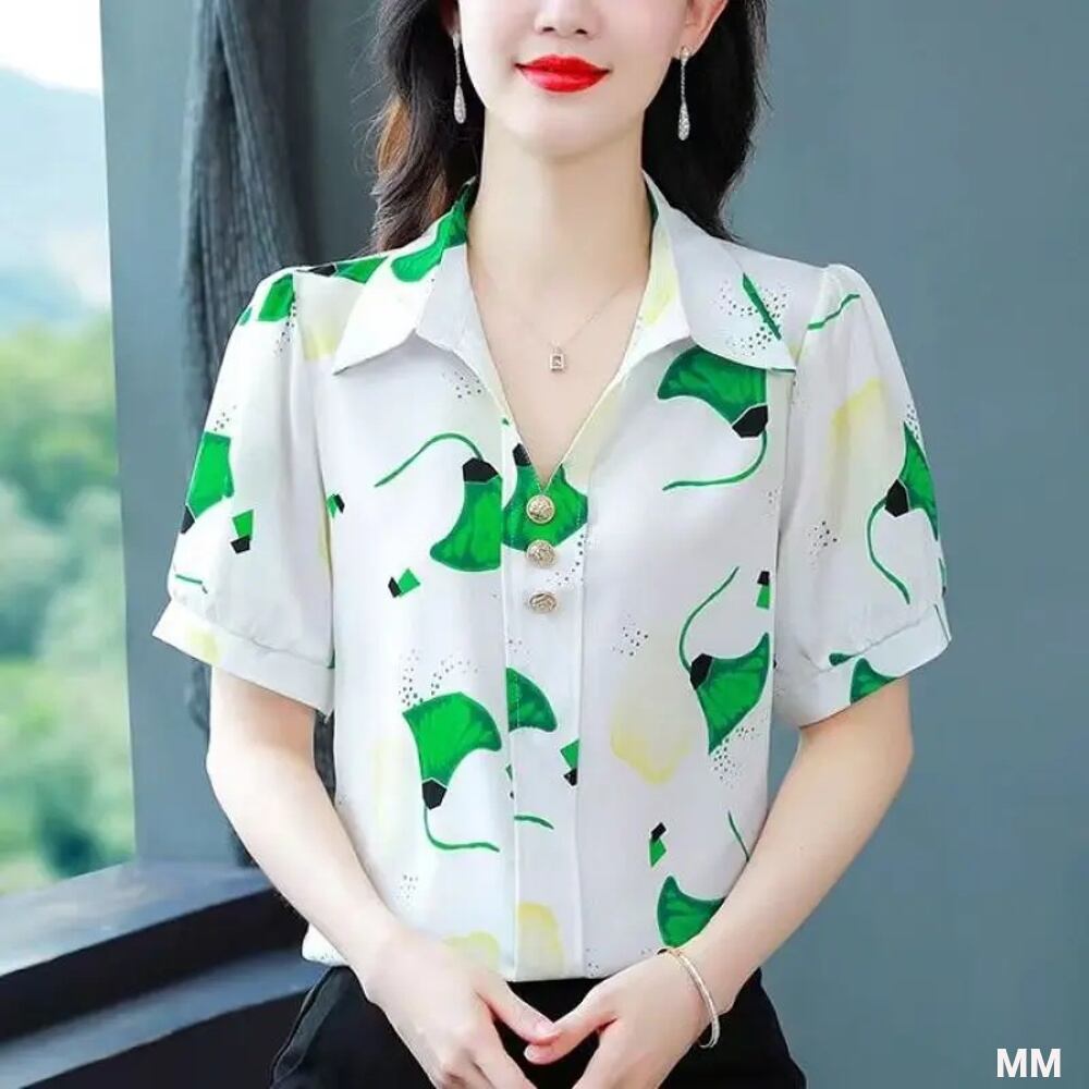 女性用Vネック半袖シフォンシャツ,ルーズフィット,カジュアル,ボタン付き,エレガントなファッション,夏 Tシャツ シャツ T240619142307_01