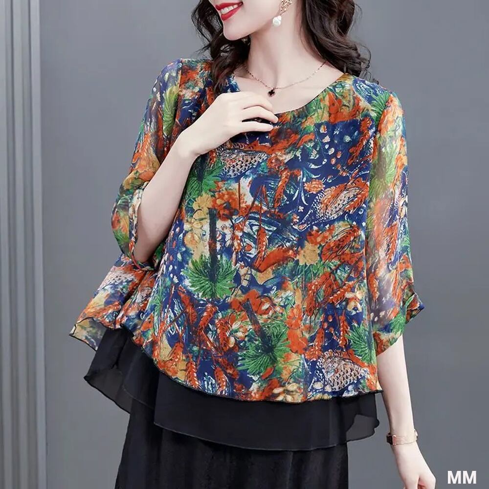 女性用半袖シフォンシャツ,流行のルーズフィット,ラウンドネック,カジュアルウェア,すべてが一致,細いトップス,夏のファッション Tシャツ シャツ T240619142316_01