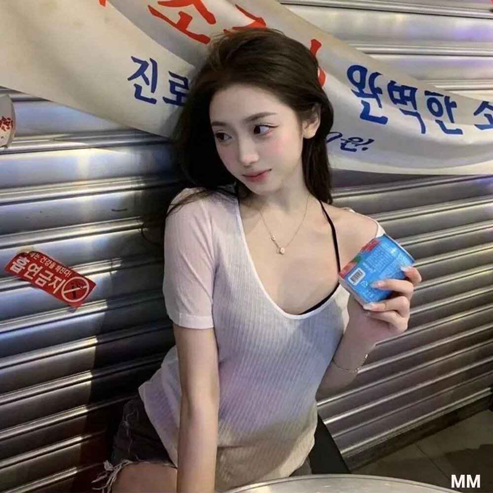 Xpqbb 女性用の白いTシャツ,Vネックのセクシーな透明なTシャツ,女性用のだぶだぶの半袖トップス Tシャツ シャツ T240619133927_01