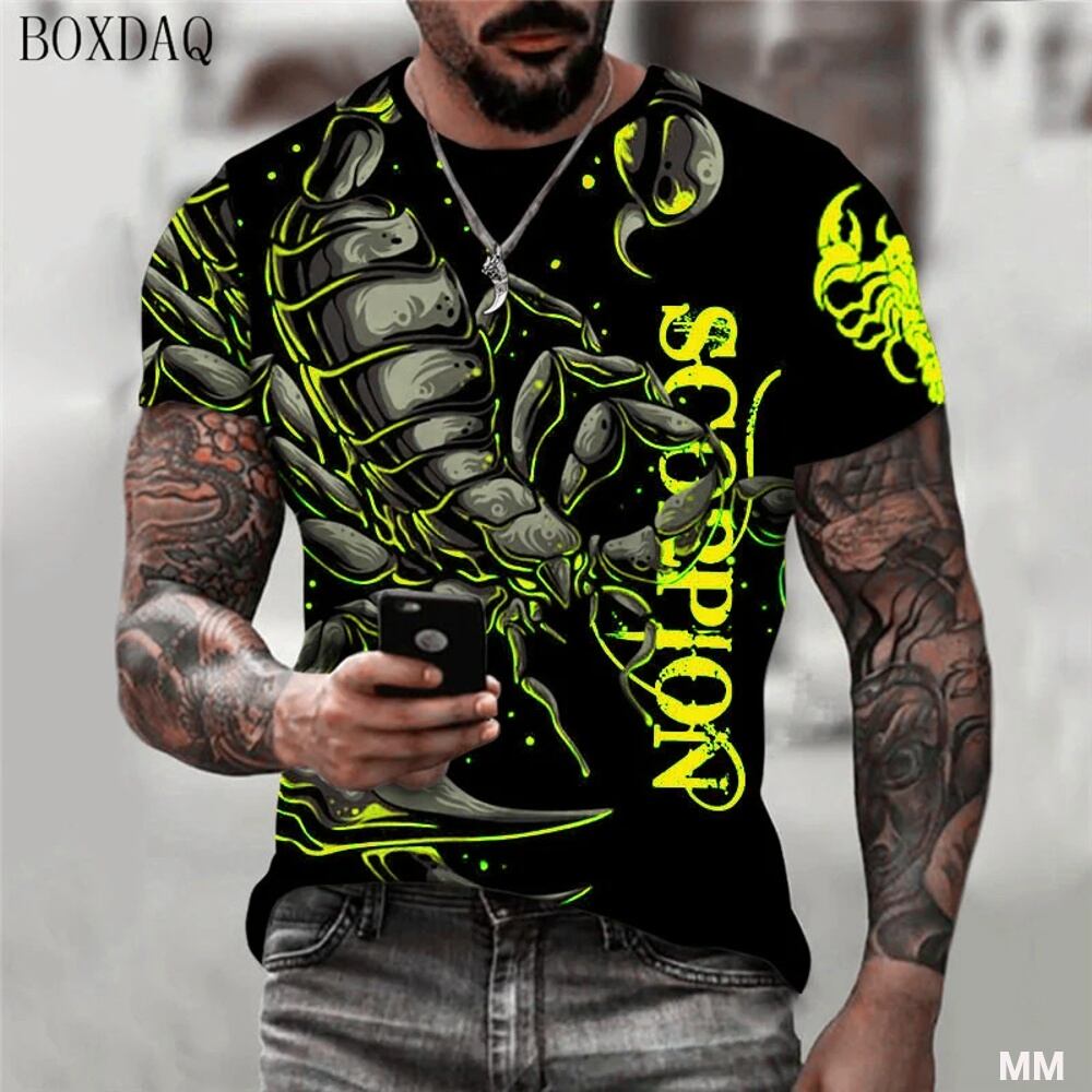 男性用スコーピオンプリントTシャツ,半袖,ラウンドネック,動物の3Dプリントが施されたファッショナブルなカジュアルウェア,ラージサイズ,6xl Tシャツ シャツ T240619133930_02