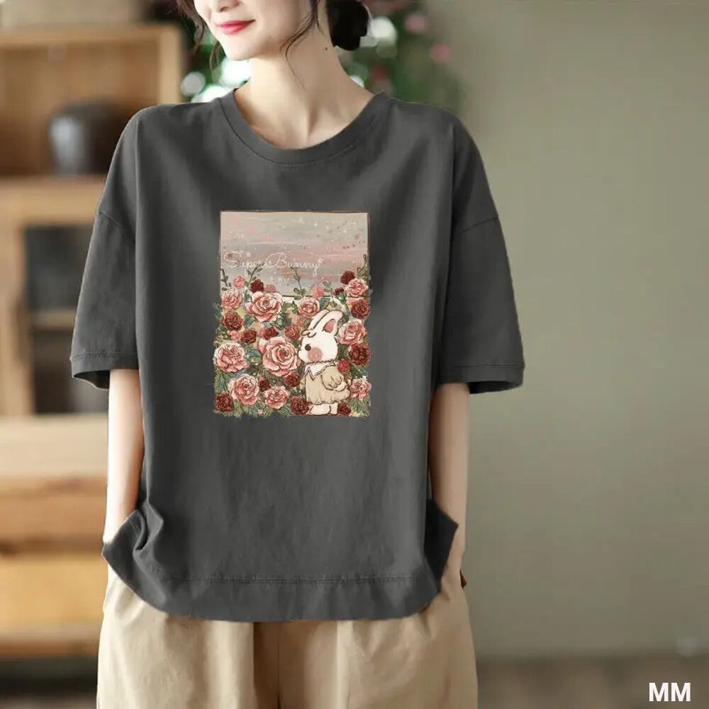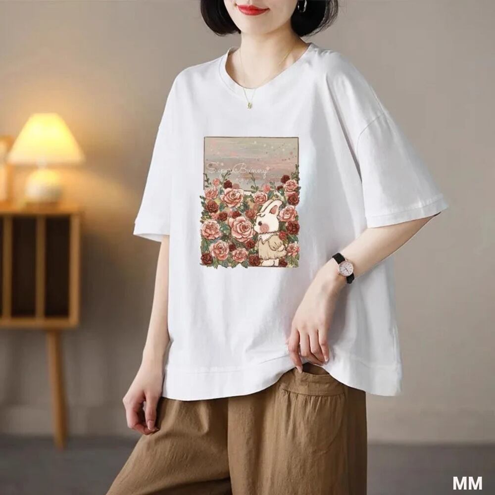女性のための漫画のプリントTシャツ,だぶだぶのラウンドネック,半袖,ミニマリストトップ,単色,カジュアル,ファッショナブル,新しい,夏,2024 Tシャツ シャツ T240619134004_02