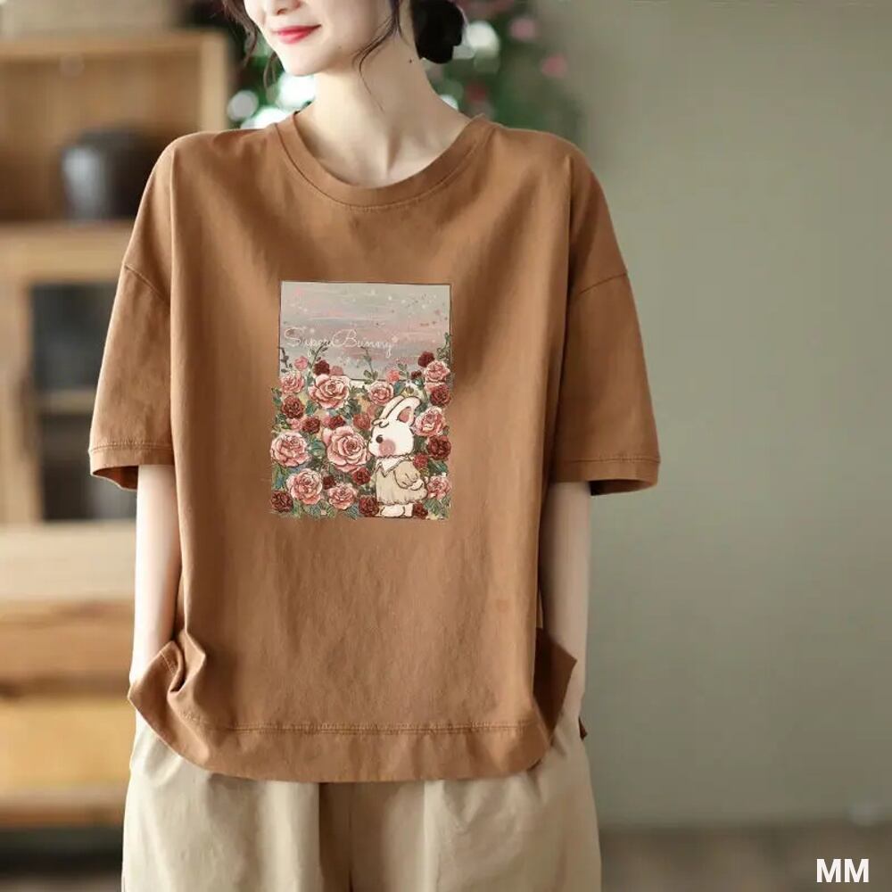 女性のための漫画のプリントTシャツ,だぶだぶのラウンドネック,半袖,ミニマリストトップ,単色,カジュアル,ファッショナブル,新しい,夏,2024 Tシャツ シャツ T240619134004_03