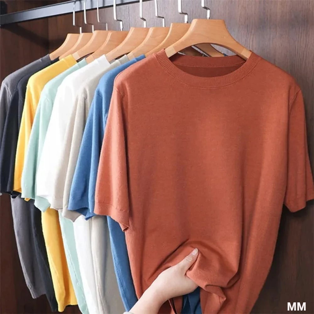 男性用の超微細メリノウールTシャツ,ニット,ラウンドネック,半袖,通気性のある薄いキャッシュ,無地 Tシャツ シャツ T240619134050_05