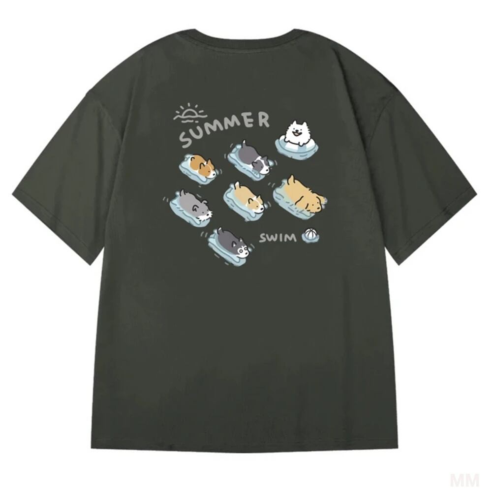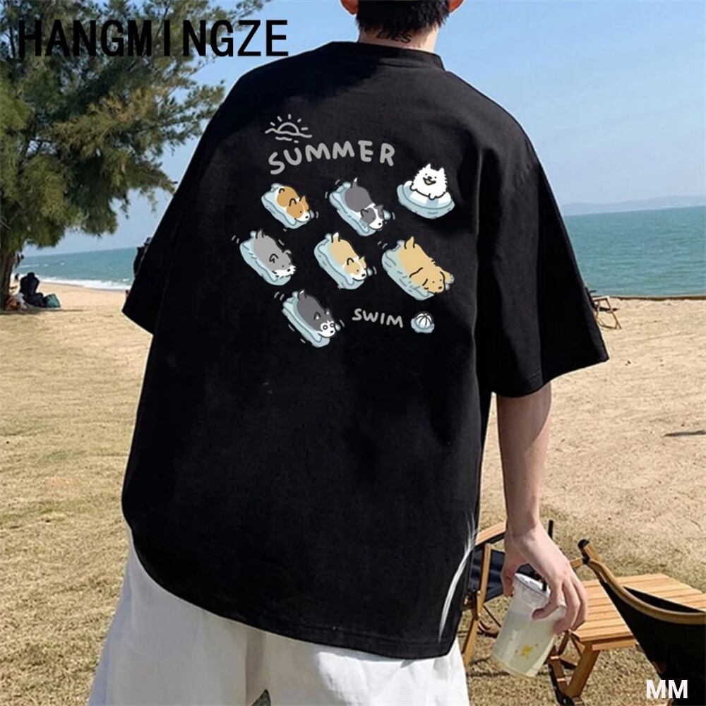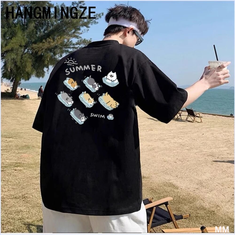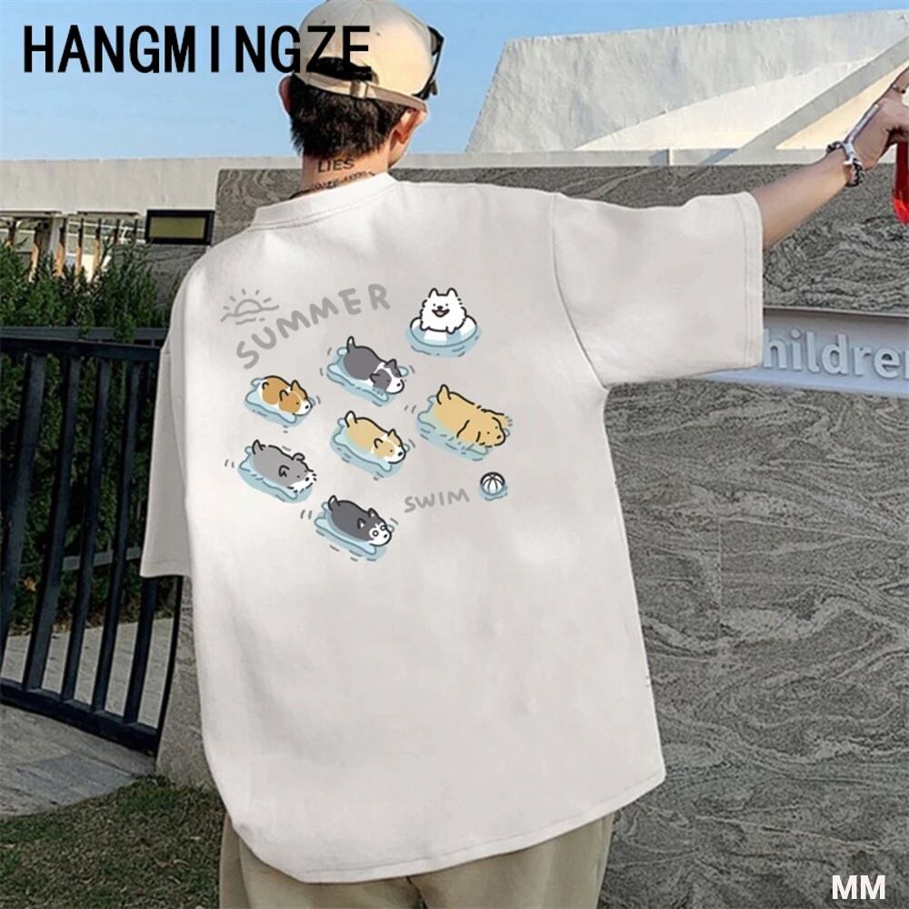 日本のアニメの犬のプリントTシャツ,半袖トップス,漫画の綿のTシャツ,ゆったりとした服,ハイストリート,夏 Tシャツ シャツ T240619134057_01