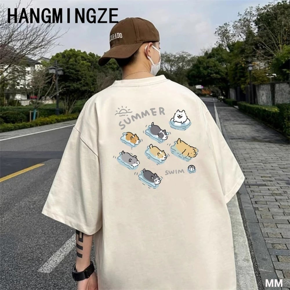 日本のアニメの犬のプリントTシャツ,半袖トップス,漫画の綿のTシャツ,ゆったりとした服,ハイストリート,夏 Tシャツ シャツ T240619134057_03