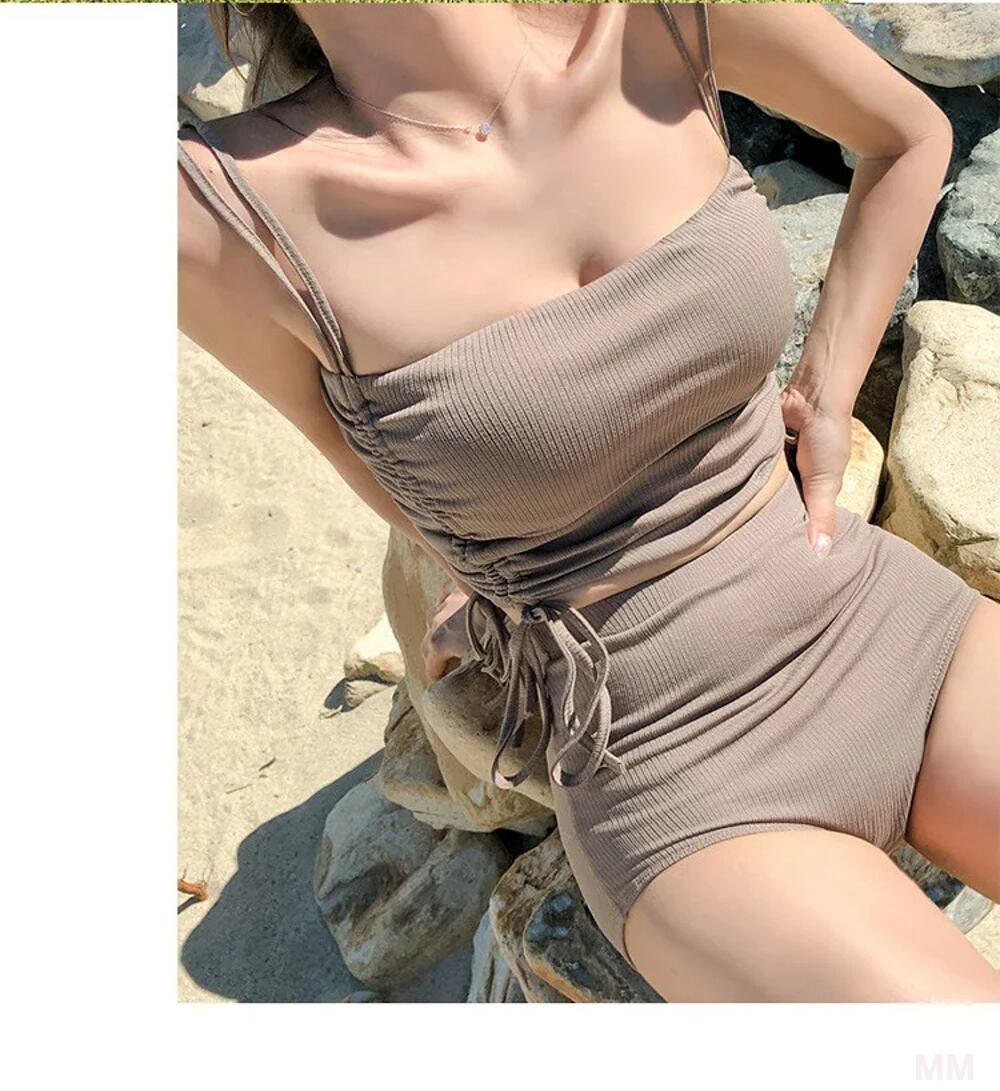 韓国スタイルのレディースビキニセット,ツーピース水着,ハイウエスト,無地,ビーチ用,2020 韓国系水着 セパレート水着 ワンピース水着 T240626153902_01
