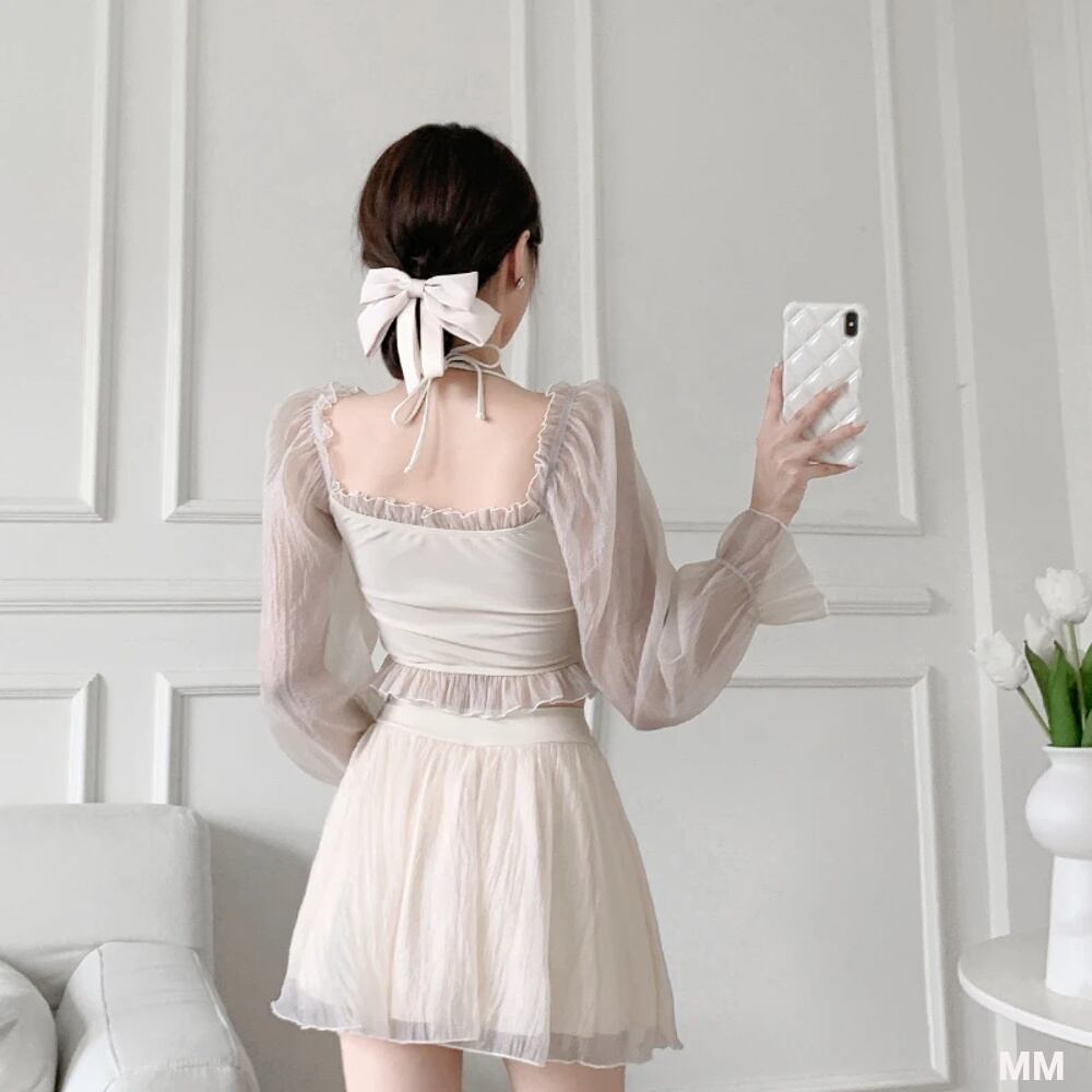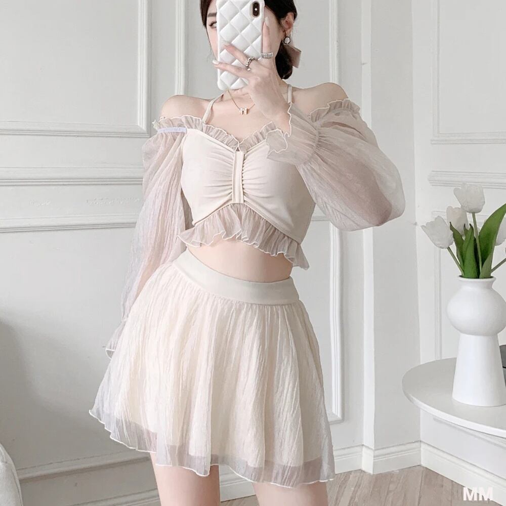 女性のためのセクシーなツーピース水着,韓国スタイル,ハイウエスト,単色,ビーチウェア,休暇,夏 韓国系水着 セパレート水着 ワンピース水着 T240626154339_01