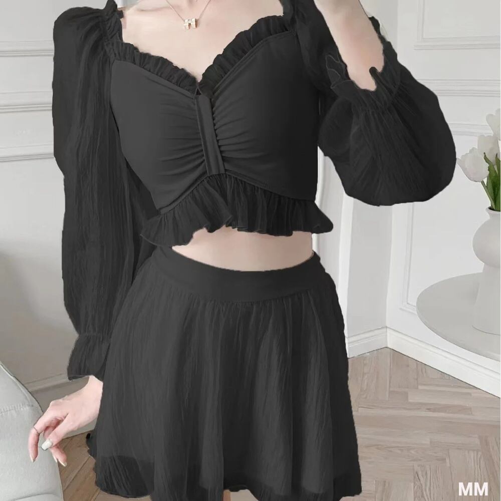 女性のためのセクシーなツーピース水着,韓国スタイル,ハイウエスト,単色,ビーチウェア,休暇,夏 韓国系水着 セパレート水着 ワンピース水着 T240626154339_02