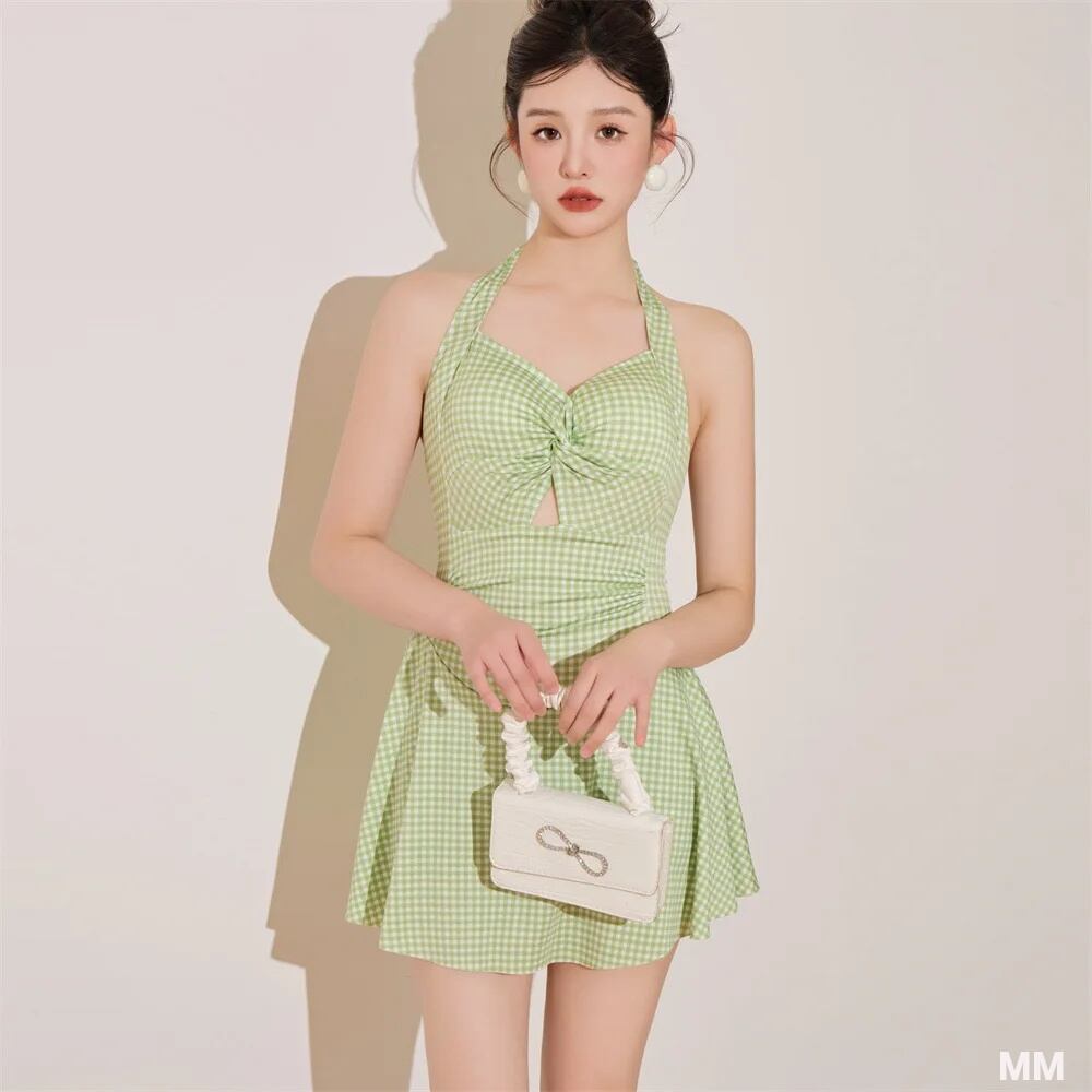 ワンピースレディースビキニセット,アクセント付きワンピース水着,カワイイスタイル,市松模様のスカート,ビーチウェア,夏,2023 韓国系水着 セパレート水着 ワンピース水着 T240626154459_03