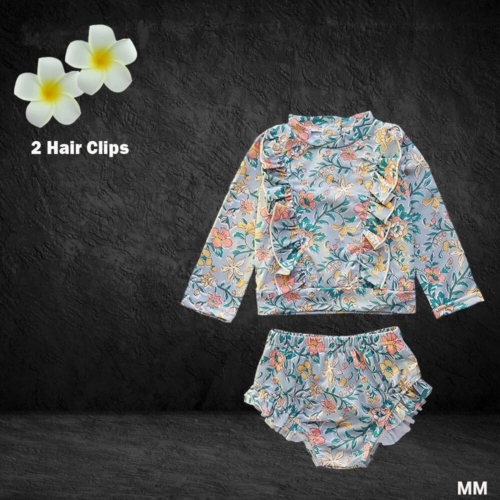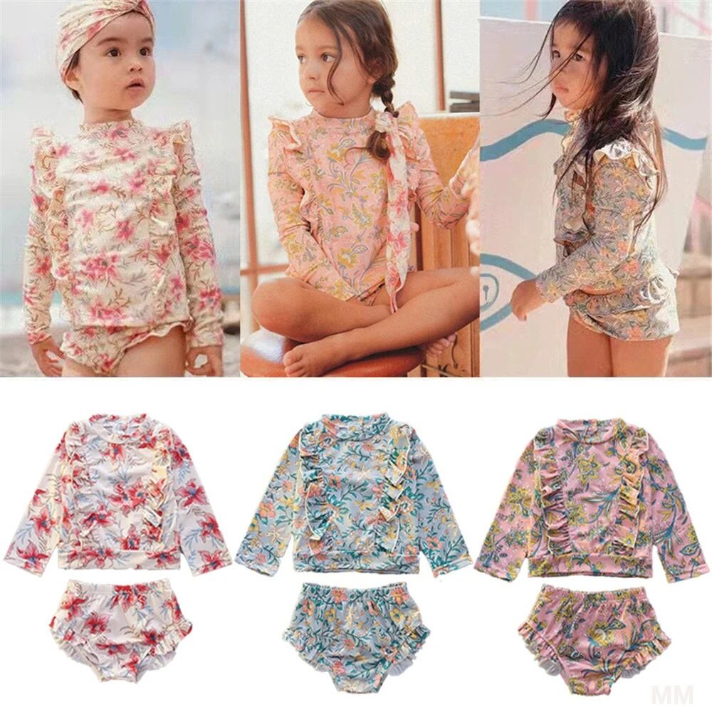 女の子のためのヴィンテージフローラルビキニ,韓国スタイルの水着,日焼け止め付き長袖フリルフラワー水着,ハイウエスト水着 韓国系水着 セパレート水着 ワンピース水着 T240626154611_16