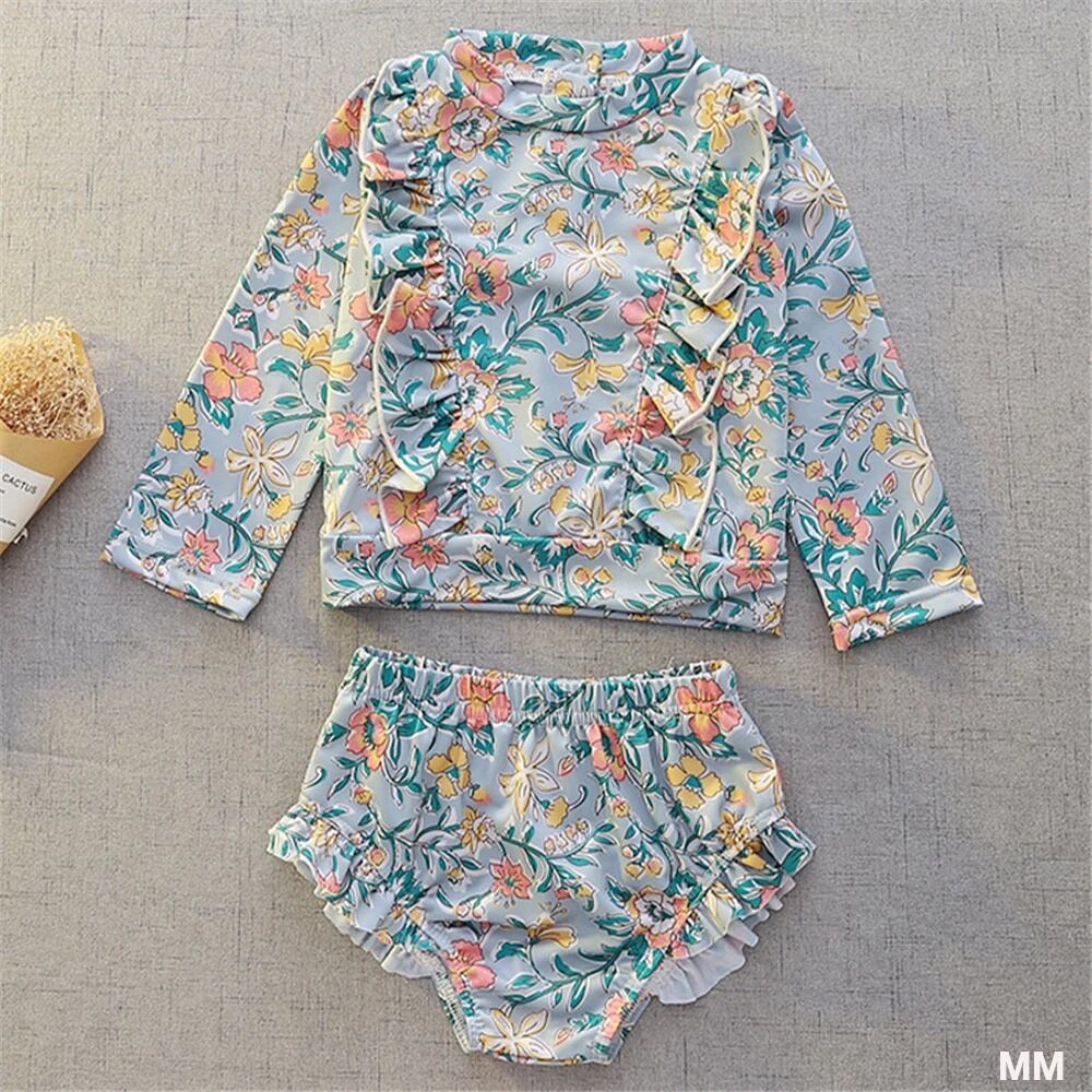 女の子のためのヴィンテージフローラルビキニ,韓国スタイルの水着,日焼け止め付き長袖フリルフラワー水着,ハイウエスト水着 韓国系水着 セパレート水着 ワンピース水着 T240626154611_17