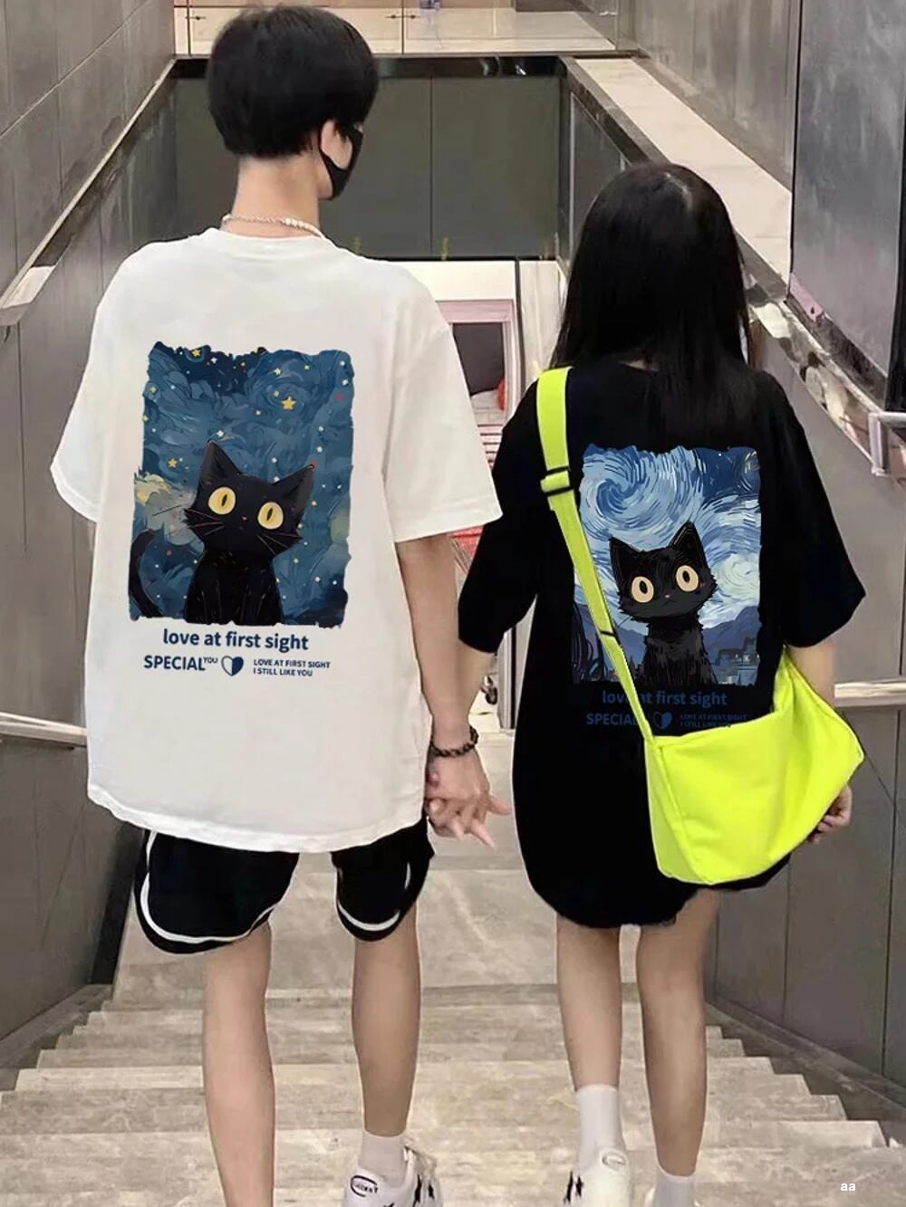 男性と女性のための青い空の猫のプリントTシャツ,半袖のルーズなコットントップ,ボーイフレンドとガールフレンドのためのTシャツ ボトム ボトムス ズボン T240619170633_03