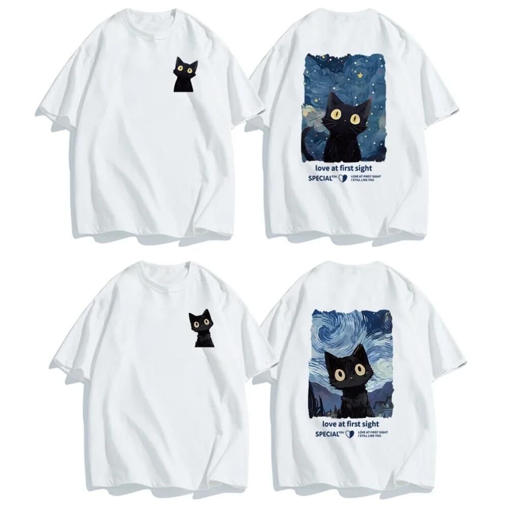 男性と女性のための青い空の猫のプリントTシャツ,半袖のルーズなコットントップ,ボーイフレンドとガールフレンドのためのTシャツ ボトム ボトムス ズボン T240619170633_04